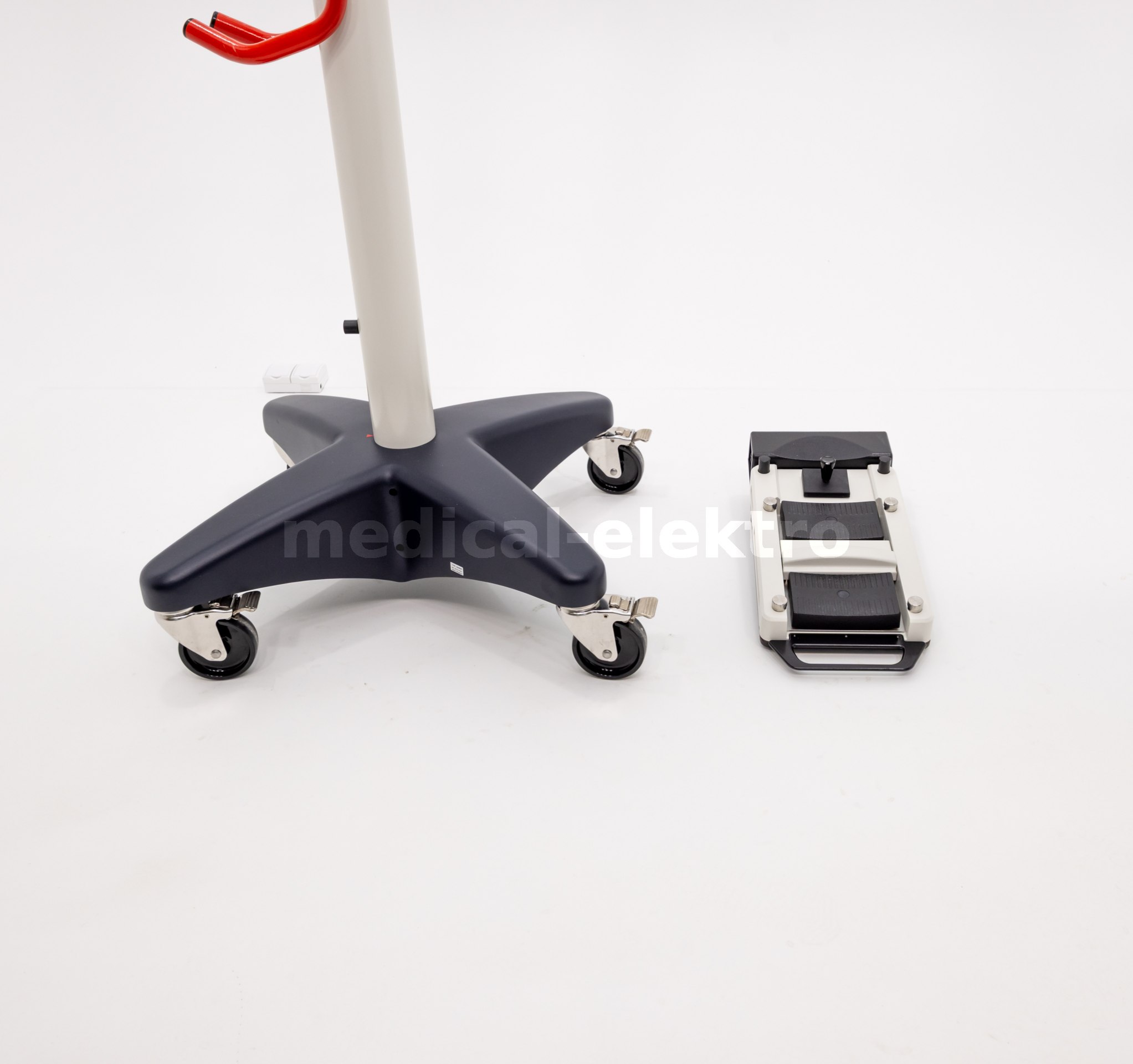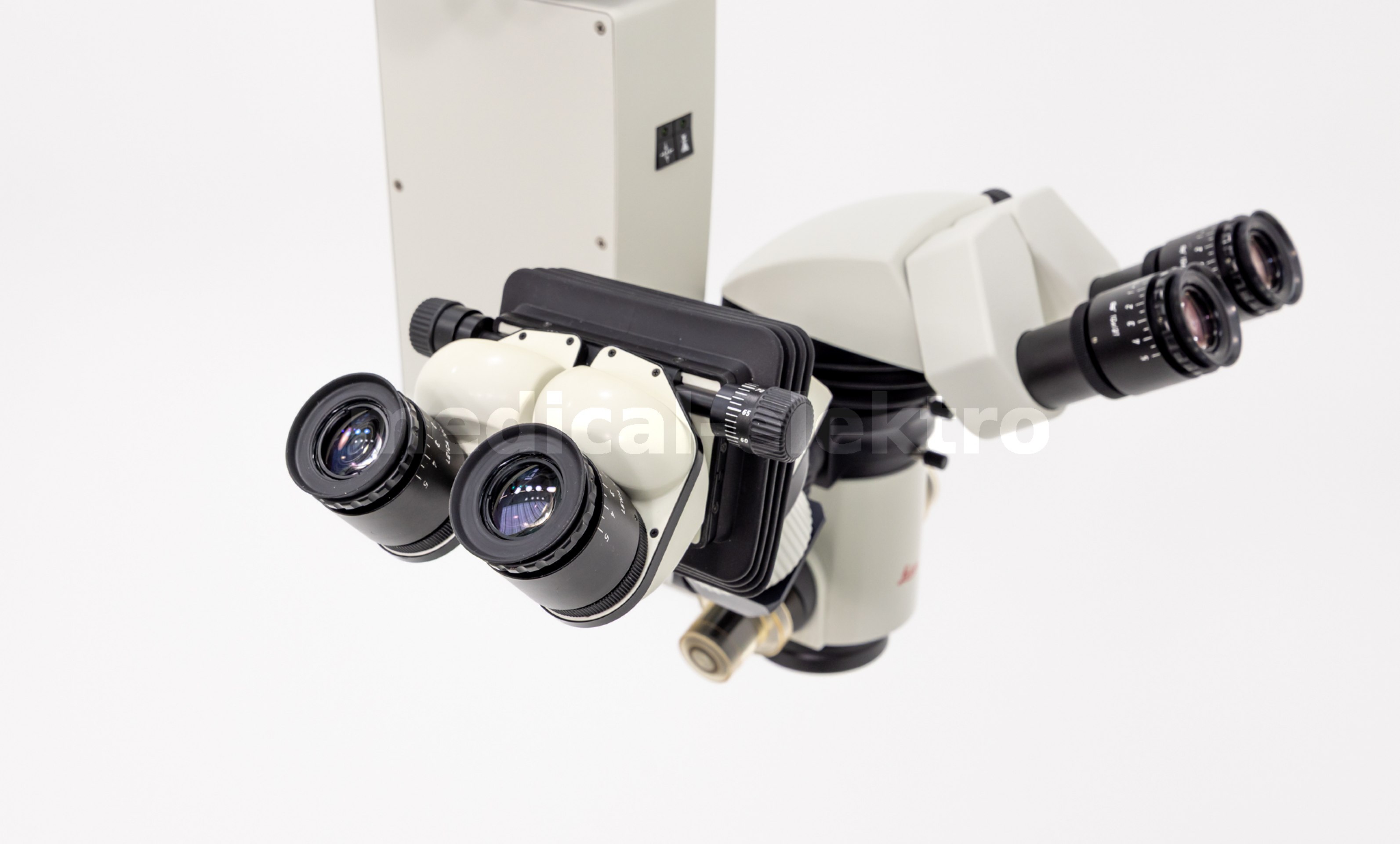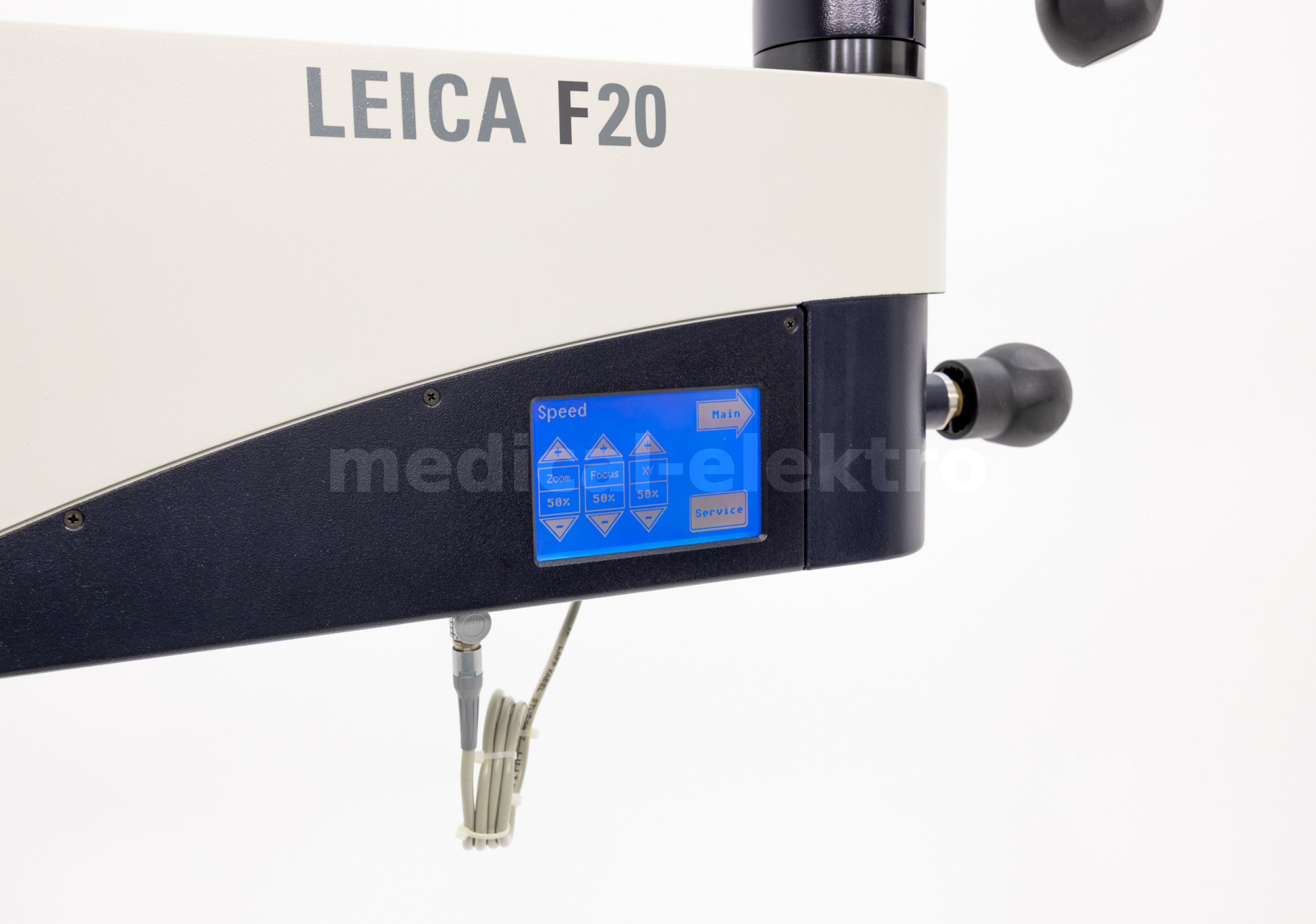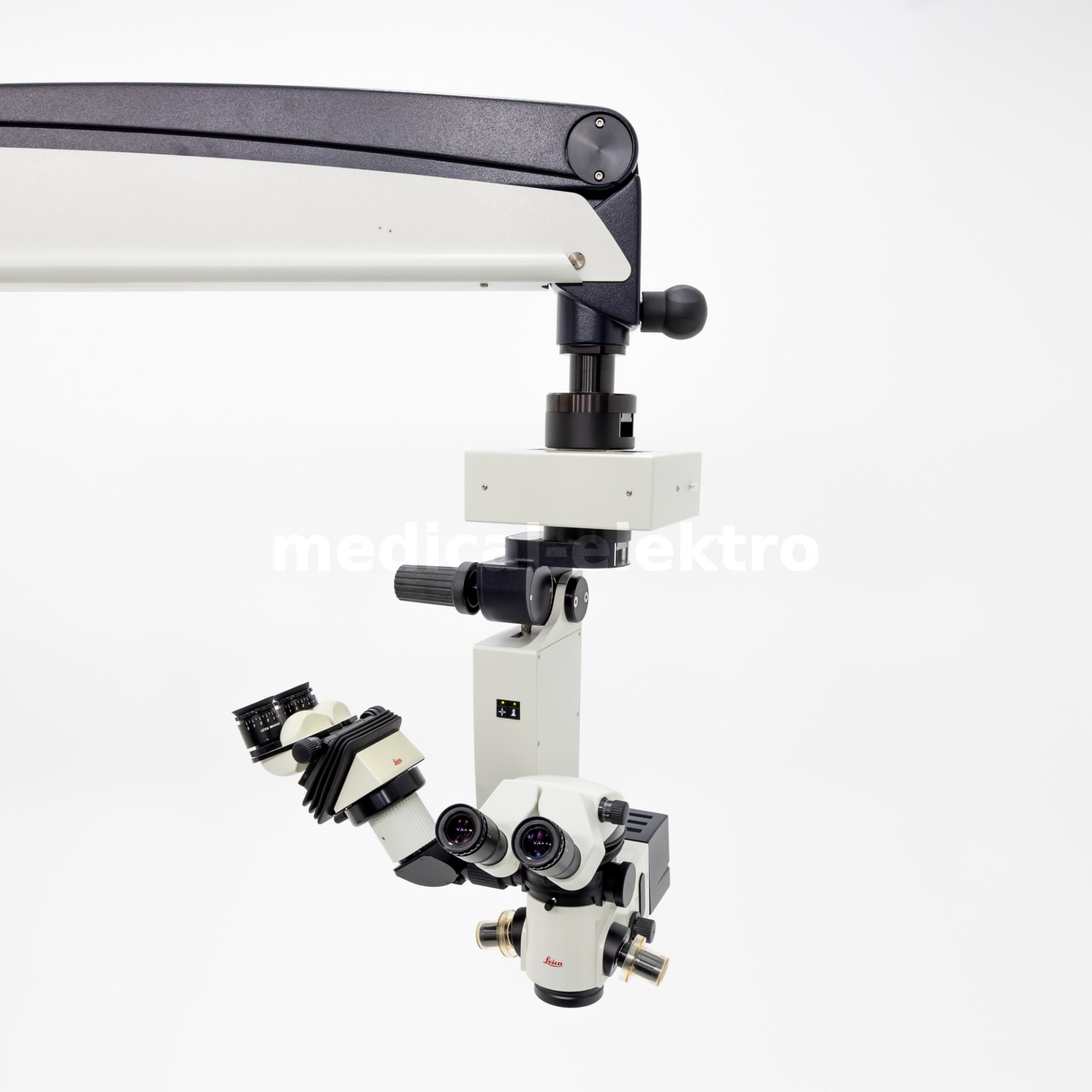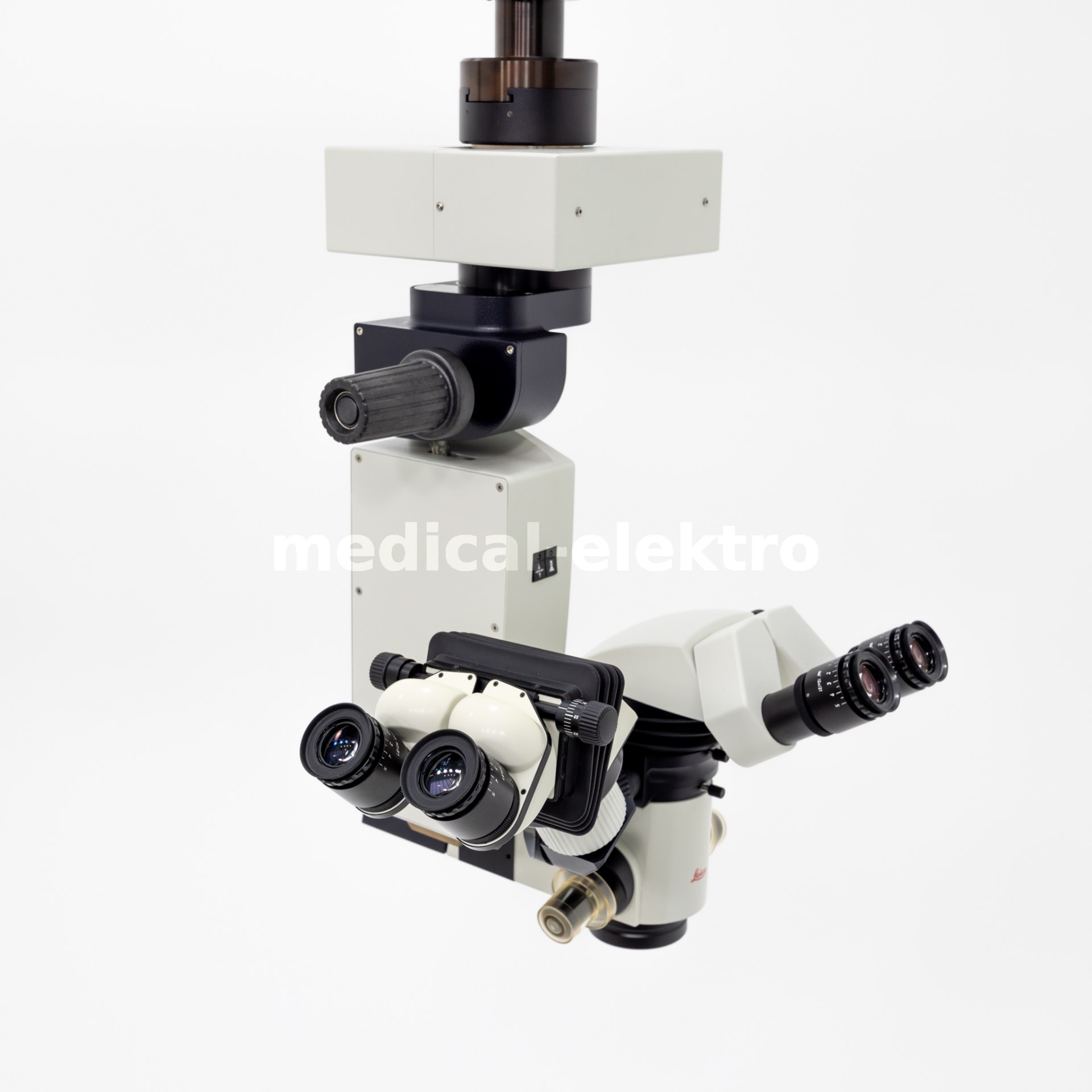 Ein gebrauchtes, überholtes, elektrisch gesteuertes Operationsmikroskop Leica M620 auf einem F20 Bodenstativ. Das Mikroskop ist ideal geeignet für die Ophthamologie.